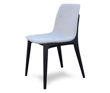 Sedia dallo stile moderno in massello di faggio o frassino. Verniciatura personalizzabile in tinte da campionario. Struttura della seduta in multistrato imbottita in poliuretano espanso elastico e disponibile in diversi rivestimenti: stoffa, ecopelle e pelle. Ideale per uso casa, all'interno di una cucina moderna, ma anche per il contract (bar, ristorante, caffè b&b, hotel).