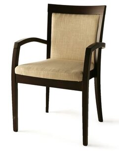Poltroncina con braccioli impilabile dallo stile contemporaneo in massello di faggio. Verniciautra in tinte da campionario. Sedile e schienale in multistrato imbottiti in poliuretanto espaso elastico disponibile in diversi rivestimenti: stoffa, eco pelle e pelle. Sedia adatta all'uso in casa di riposo, navale e contract dove si presta ad arredare ogni ambiente: ristorante, hotel, bar, b&b, caffè, sala d'attesa, lounge.