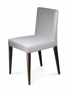 Sedia dal design moderno in massello di faggio o frassino. Verniciatura personalizzabile in tinte da campionario. Struttura in multistrato imbottita in poliuretano espaso elastico, disponbile in diversi rivestimenti: stoffa, ecopelle e pelle. Ideale per arredare sia la casa ma anche all'uso contract per bar, ristorante, hotel, b&b, lounge, caffè, reception, sala d'attesa etc. Su richiesta disponibile con rivestimento sfoderabile.