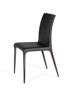 Sedia dal design moderno in massello di faggio o frassino. Verniciatura personalizzabile in tinte da campionario. Struttura in multistrato imbottita in poliuretano espaso elastico, disponbile in diversi rivestimenti: stoffa, ecopelle e pelle. Ideale per arredare sia la casa ma anche all'uso contract per bar, ristorante, hotel, b&b, lounge, caffè, reception, sala d'attesa etc.